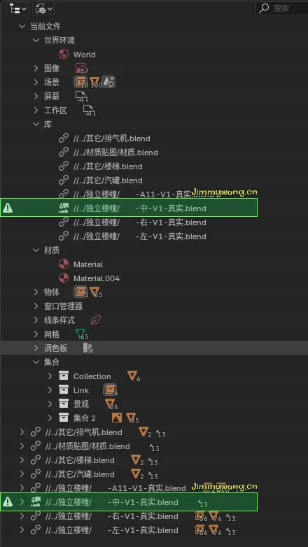 而我们通过修改【材质.blend】这里面的材质信息,就可能对应的更新到所有【关链】对应【材质】信息
