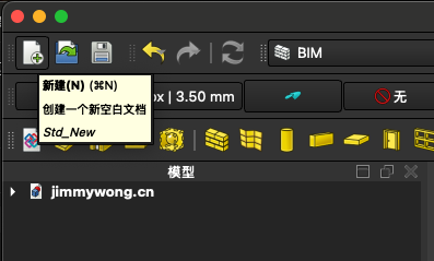 生成【DXF】后,我们可打开FreeCAD并进行到【BIM】工作台,创建我们第一个【BIM项目】