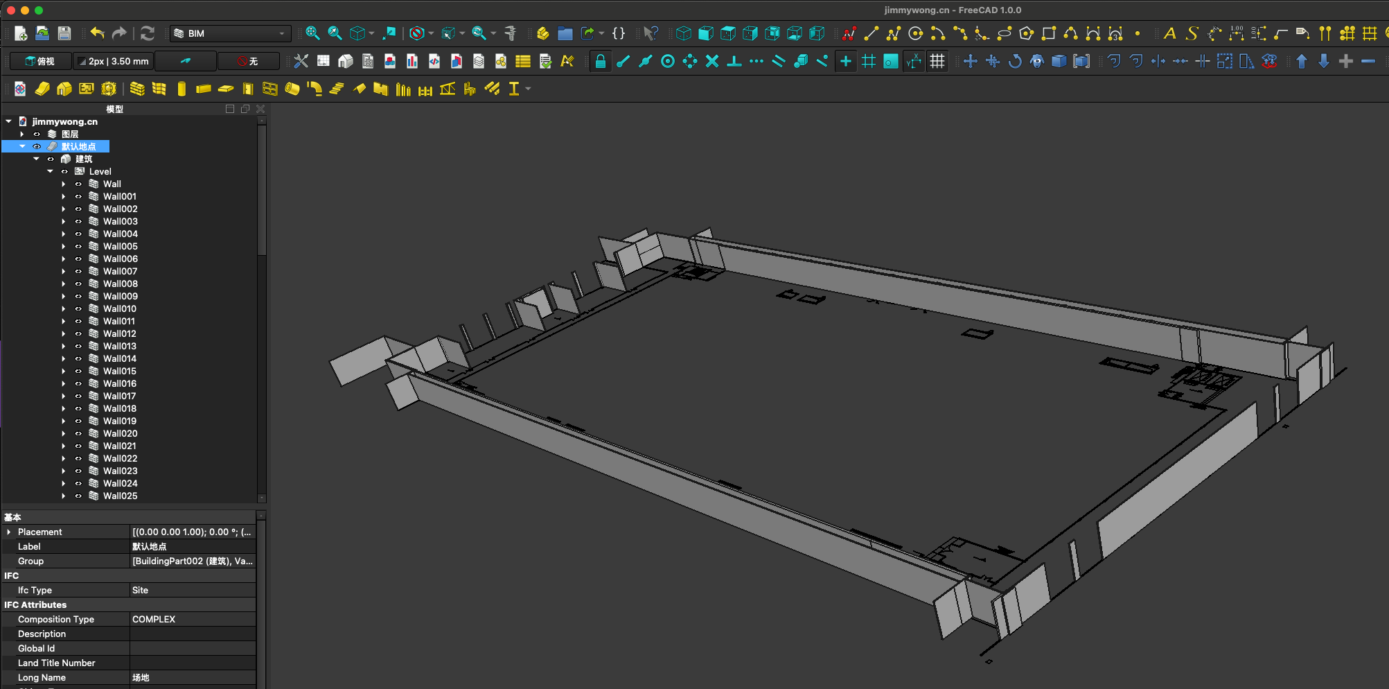 我们在制作FreCAD零件工作台时,通过一个实例来讲解如何使用Freecad的零件工和台和草图工作台以及说了一个最基本的装配工作台的使用,我们同样用一个实例来讲解BIM工作台该如何使用,BIM工作台其实就是建筑信息建模(Building Information Modeling),而这方面不会以一步一步来进行讲解,而是以一个分类来介绍如何使用BIM工作台的内容,经如墙,窗,柱子等等分类说明,不会像《FreeCAD基础技术应用》那么详细去写第一步步骤,因为零件工作台和草图工作台合并在一起了,BIM是一个合并的建工作台,不会像零件那样,去切换草图工作台,BIM的内容基本可以在这个工作台完成,因此主要在于分类功能使用讲解